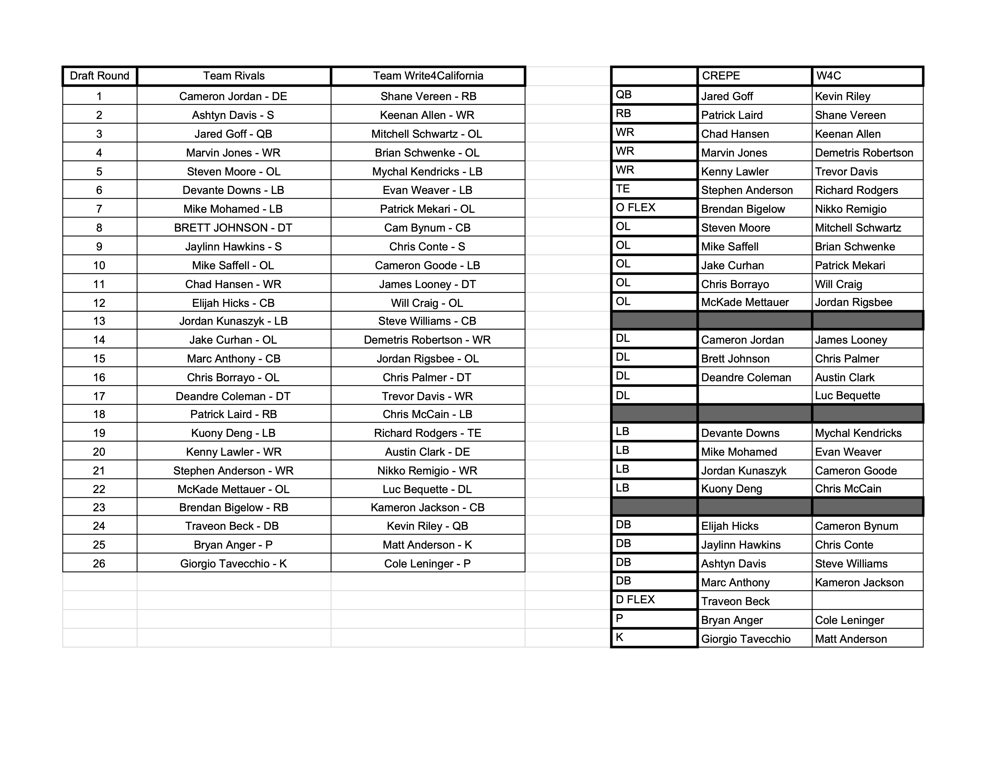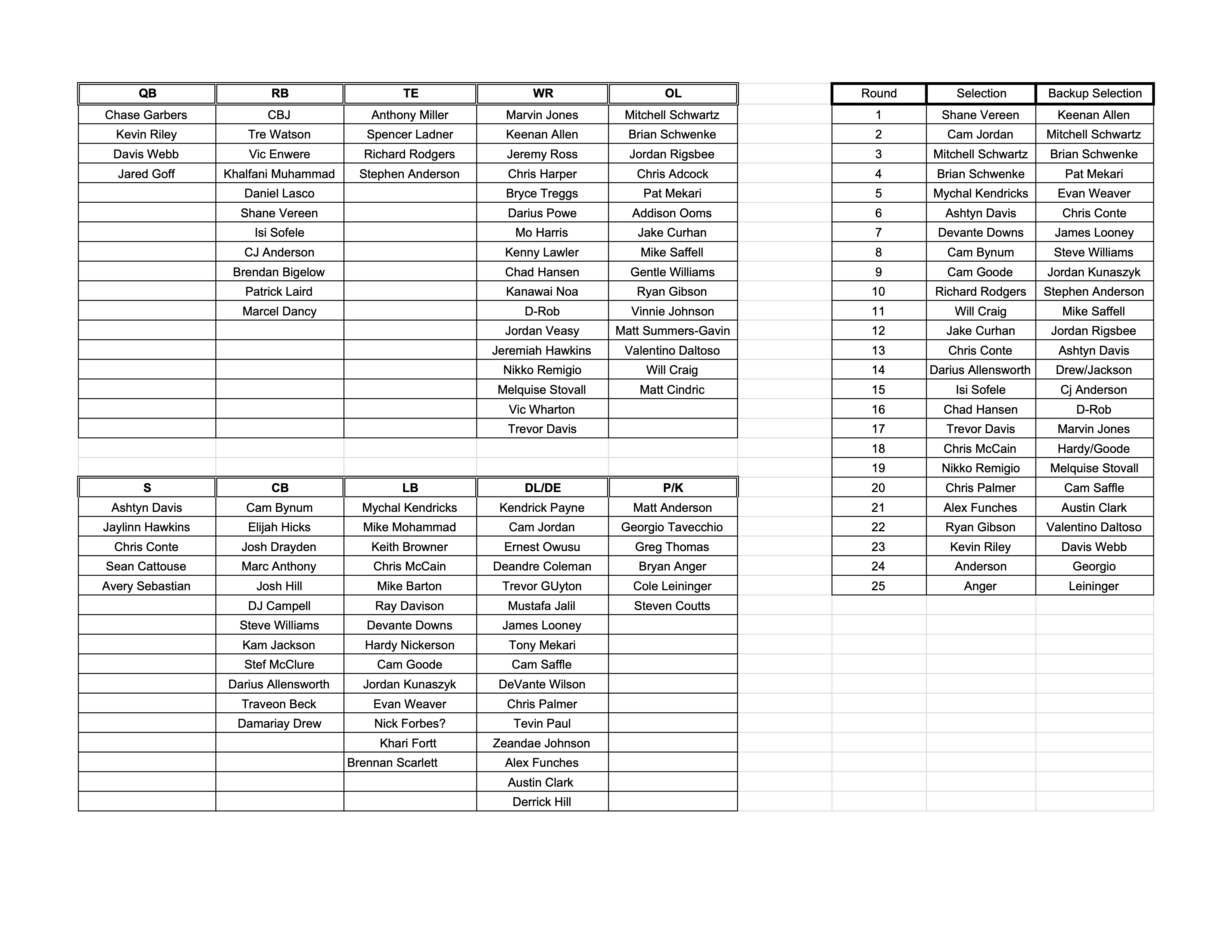 Also look at our draft board and the actual draft selections in the photos below. Let us know who you think would win and who you would have drafted!