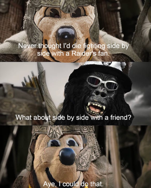 Nothing against the Raiders, but if the black bear thing works out, it’s only a matter of time before we have a blackout game with black unis