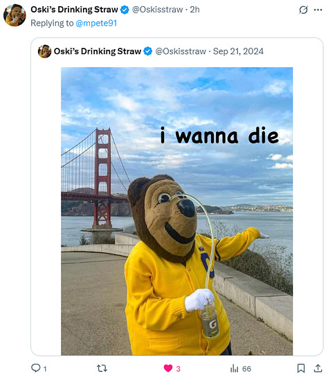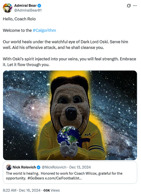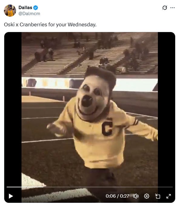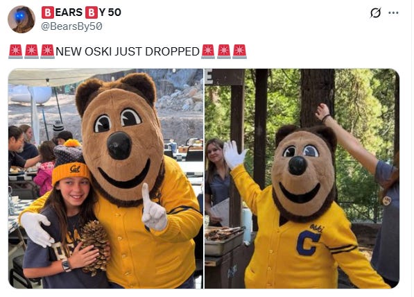 Yesterday was National Mascot Day! And while many on the internet celebrated, none celebrated more than the Calgorithm. I asked around for folks best posts with Oski in them and here we are!