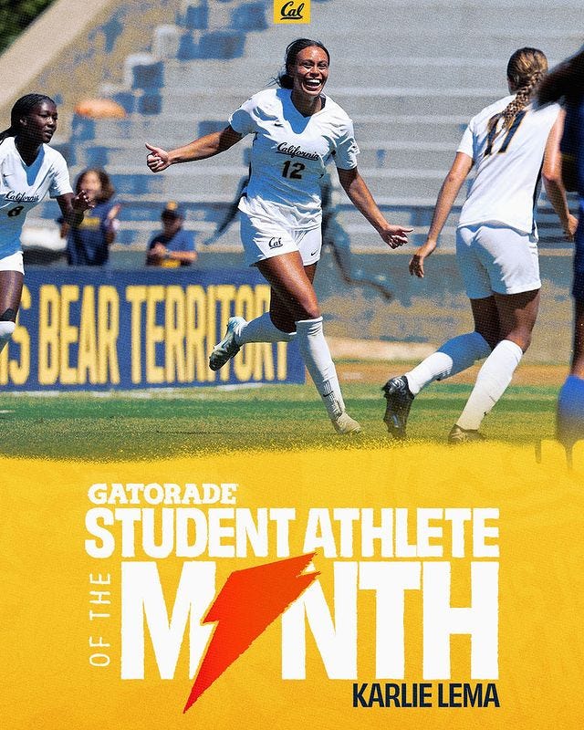 Cal Men’s Soccer put the rest of the ACC on notice beating #1 Ranked Pitt late Friday night. After a scintillating September, Karlie Lema of the Women’s Soccer Team earned the Gatorade Student Athlete of the Month scoring nine goals, putting her firmly in the national lead. Congrats Karlie!