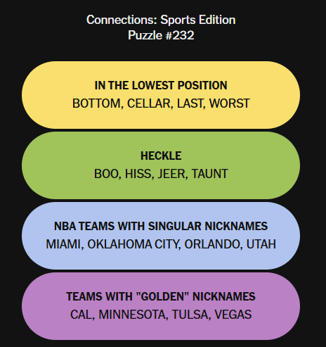 And for those of you that play Connections: Sports Edition, Cal was featured yesterday. I’ll try not to make a big deal about our companion categories.
