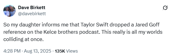 While unveiling the new album on the “New Heights” Podcast, Taylor casually dropped Jared Goff’s name, proving once again, Cal is at the cultural center of the Football Universe. Listen to Jared talk about being name dropped by Taylor Swift here. Now if you’ll excuse me, I’m going to enjoy some SEO.