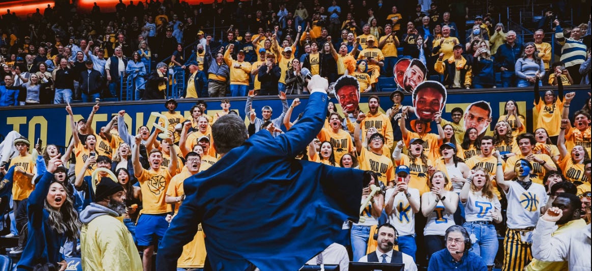 But when the Bears suffered a gut punch buzzer beater loss to UW, then bounced back to beat Wazzu despite suffering ANOTHER buzzer beater, I felt like Friday could be the day. I couldn’t even leave Sacramento until 5:30, but I wasn’t going to miss this. My wife and I raced down I-80, furiously parked off Shattuck, power walked up to Haas (surrounded by enthusiastic but confused students trying to figure out where the student entrance to Haas is located) and got to our seats at the first media time out, as Jaydn Ott said something unintelligible to the crowd.