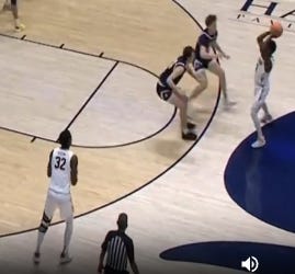 Aimaq drives and sucks the defense with him. He makes a nice pass out to Cone, who has now drawn over Celestine’s defender. Cone can shoot, but instead passes over to a wide open Celestine, who makes the basket.