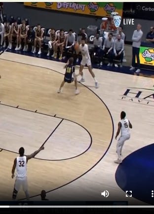 I love the little things from all of the players. There are four individual screening actions. The ease of Keonte's behind the back bounce pass. The relaxed way Aimaq makes a perfect hookshot pass back out to Cone. Cone's immediate pass over to Celestine. Celestine pointing over to Cone when Aimaq begins his drive. Newell ready for a catch and shoot at the end.