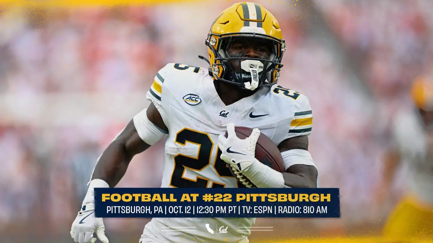 Cal travels to No. 22 Pitt on Saturday, Oct. 12, 2024