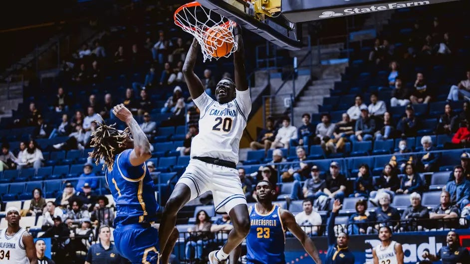 Cal’s starters were Jovan Blacksher Jr, Andrej Stojakovic, Joshua Ola-Joseph, DeJuan Campbell, and Mady Sissoko. Cal had 10 different players on the court within the game’s first 8 minutes. The Bears jumped out to an early 8-5 lead, and consistently extended it throughout the first half lead 46-28 at halftime. For the first 100 minutes of player time, Cal had 9 different players with at least 7 minutes. Andrej Stojakovic and Jovan Blacksher led the team with 15 minutes of playing time. They would pace the scoring for the Bears with 13 points for Blacksher and 10 for Stojakovic at halftime.