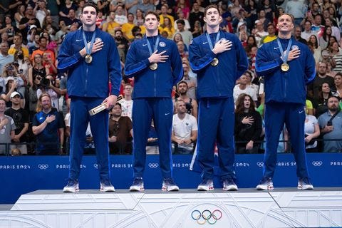 GOLD — 1 (Jack Alexy, USA, Men’s Swimming, Men’s 4x100m Free Relay)