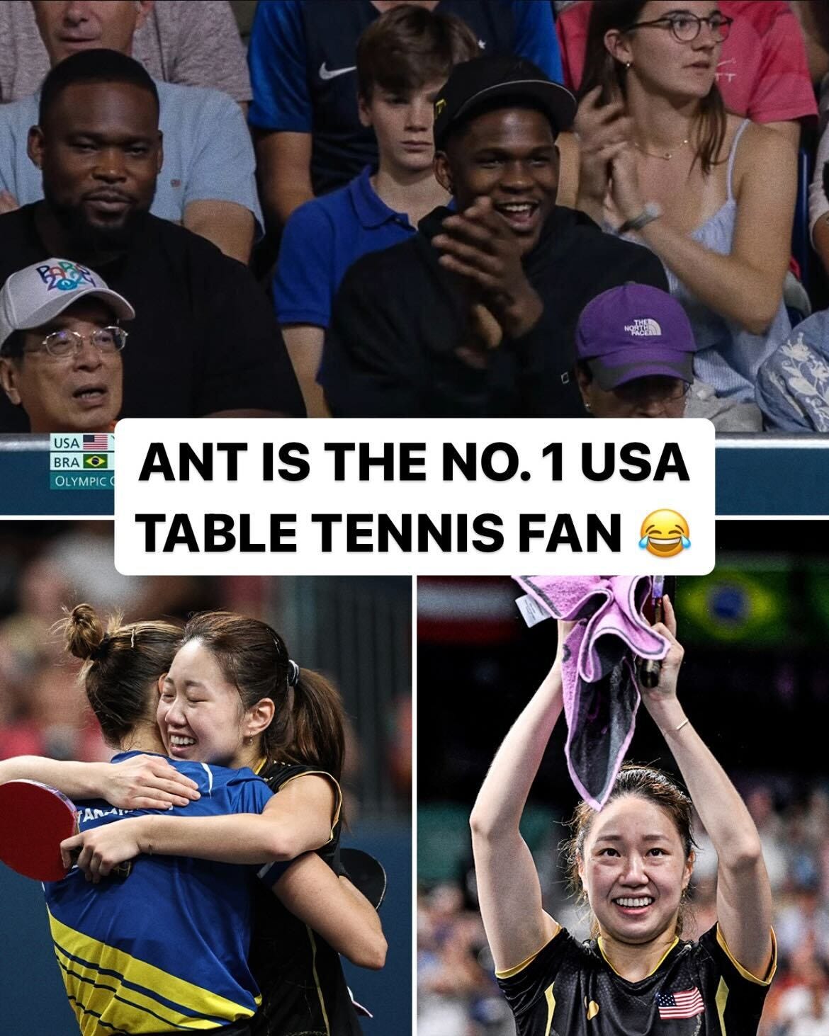 Anthony Edwards had to go support USA's Lily Zhang after Steph Curry said he'd lose 21-0 to the U.S. table tennis team