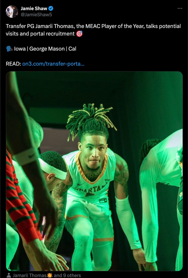 Norfolk State PG & MEAC Player of Year Jamarii Thomas could be visiting Cal