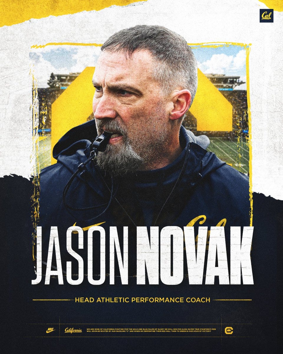 Jason Novak has been named the head athletic performance coach for California football, as announced by head coach Justin Wilcox. Novak most recently served as director of strength and conditioning at James Madison in 2024 and Michigan State from 2020-2023. With the Spartans, his highmark was the team's 2021 campaign, culminating in 11 wins and a Chick-fil-A Peach Bowl victory.