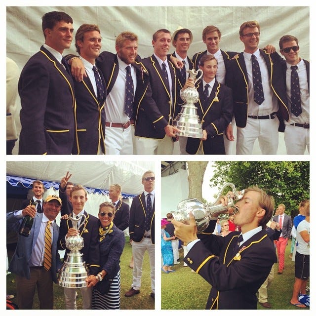 The following video came from when Julian coxed the 2V8 boat in his sophomore season of 2014 to the national title. The coxswain toss is a rowing tradition after the crew had won a big race.