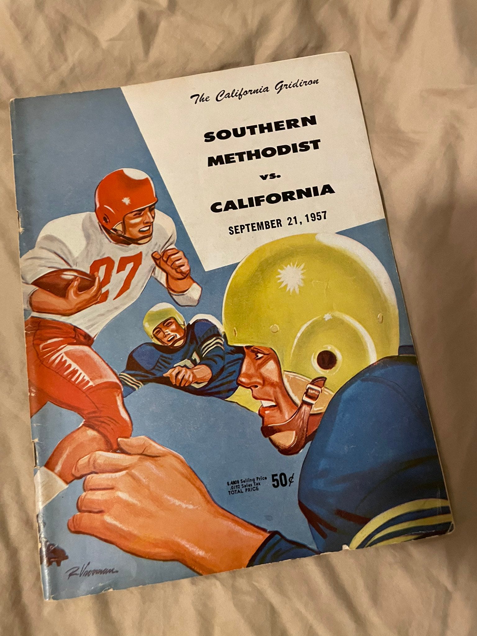 This week’s KTE is with our friend Not Craig James, an SMU burner who Get It. After we spoke he mentioned his Dad played for Cal in the 80’s. He had a game day program from when these schools met in 1957, and a bench from Memorial stadium in his kitchen, pictures after the article.
