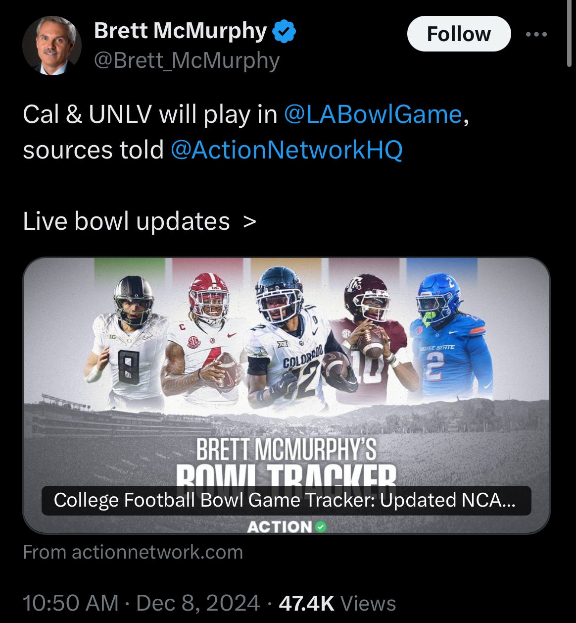 As the College Football Playoff Selection Show came and went, there were still a lot of bowl games to lay out. The California Golden Bears, standing in at 6-6, were going to get a bowl assignment in Las Vegas, Los Angeles, or El Paso in the Sun Bowl.