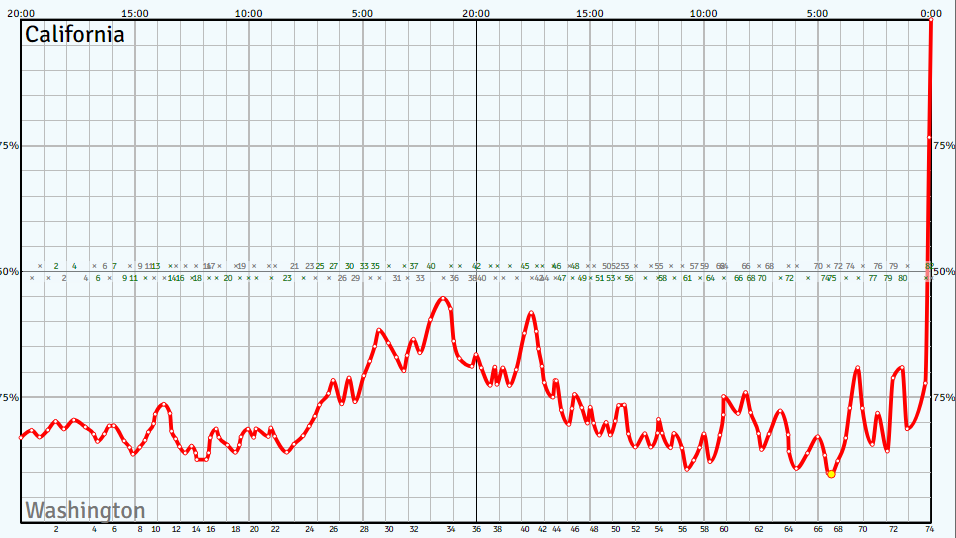 The other thing that won Cal this game? Late-game defense. Washington made exactly one basket over the last 6:15 of the game, encompassing the final 11 possessions of the game. Now, to be fair, UW did draw some fouls and get points at the line, so it’s not like Cal completely locked things down on the defensive end. But the ‘5’ part of a 12-to-5 run to end the game is just as important as the points you score.