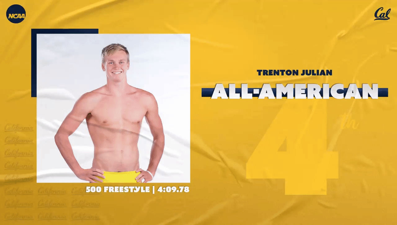 Hoffer also won the 50y Free back in 2019 as well as helping the Cal Bears to the 2019 200y Free relay national title. What else happened in 2019? The Cal Bears won the team NCAA title, of course.