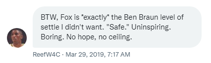 And on the strategic/schematic front, Fox’s insistence on running a painfully slow offense and inability to scheme decent shots for his team was ample evidence that his time away from basketball hadn’t led to any kind of reevaluation of his preferred, outdated offensive system.