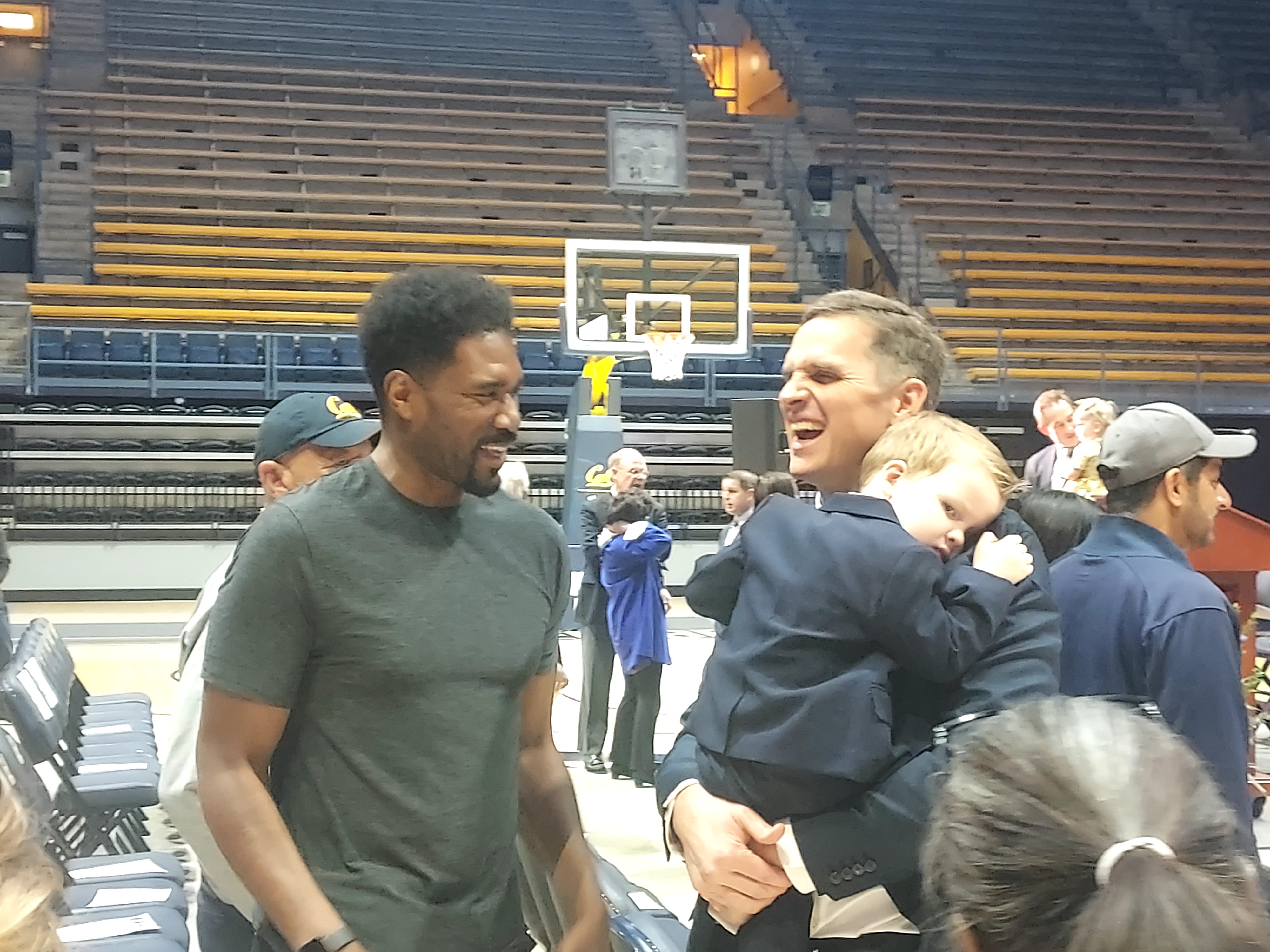 There was a definite positive vibe in Haas Pavilion this afternoon. The Cal Band and other spirit groups were in attendance. People could get their picture taken with the Axe. Former Cal great Leon Powe chatted with anyone who was interested. Both Chancellor Carol Christ and AD Jim Knowlton spoke the praises of Coach Madsen as a coach and leader who is a perfect fit for the Golden Bears, with Christ saying that Madsen shares “…the belief that Cal athletics broadens and enhances Berkeley’s comprehensive excellence.” The whole production was meant to make everyone feel good about Cal and the direction of the basketball program. It succeeded, in no small part due to Mark Madsen’s positive and energetic demeanor.