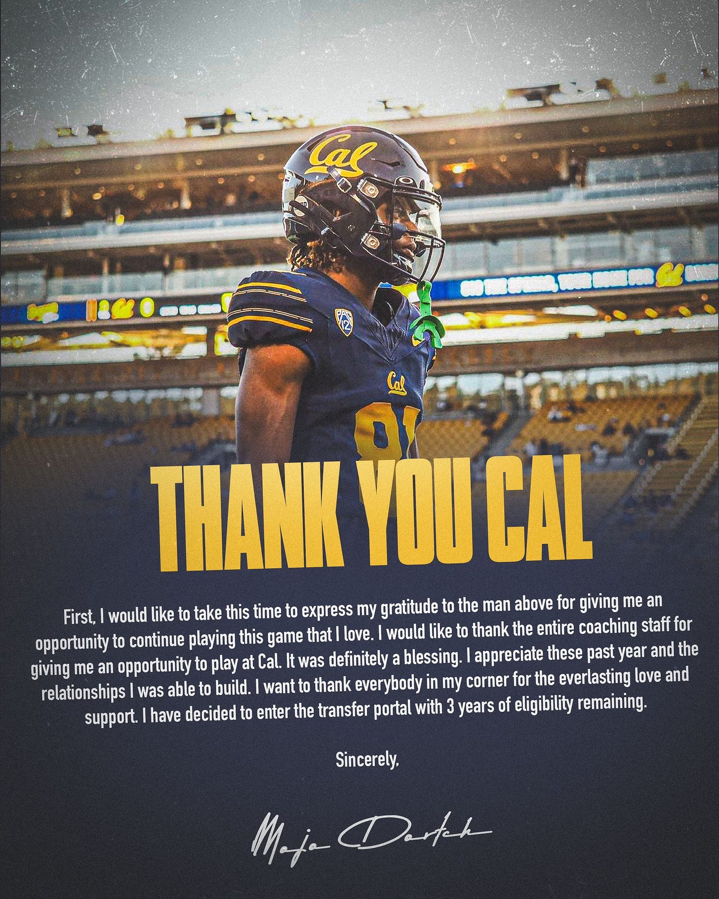 Dortch transferred from Mississippi State last year to try and break into a new-look Cal wide receiver locker room, but it never materialized. After another successful round of transfers and struggling to distinguish himself this spring, it looked like an uphill road for Dortch to contribute, and he decided to move on.