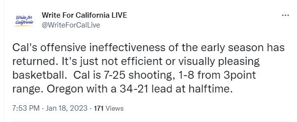 The game was effectively over by halftime. Cal stayed close for the first 12 minutes of the game. Oregon ended the half by outscoring Cal 17-7 over final seven minutes, and Cal would never get it into single digits for the rest of the night.