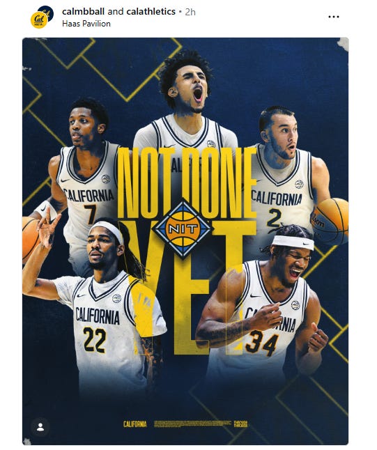 The Cal Men’s Basketball program snagged a 2-seed in the NIT Tournament and will host the University of Illinois-Chicago on Wednesday evening, with an 8pm tipoff on ESPN+.