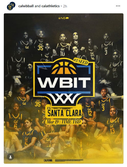 Coach Charmin Smith’s Golden Bears nabbed a #3 seed in the Women’s Basketball Invitational Tournament and will host the Santa Clara Broncos on Thursday. Santa Clara finished with a 24-9 record and third place finish in the WCC. The Broncos’ 13 conference wins are tied for most in program history. They were most recently in the WBIT following the 2024-25 season.