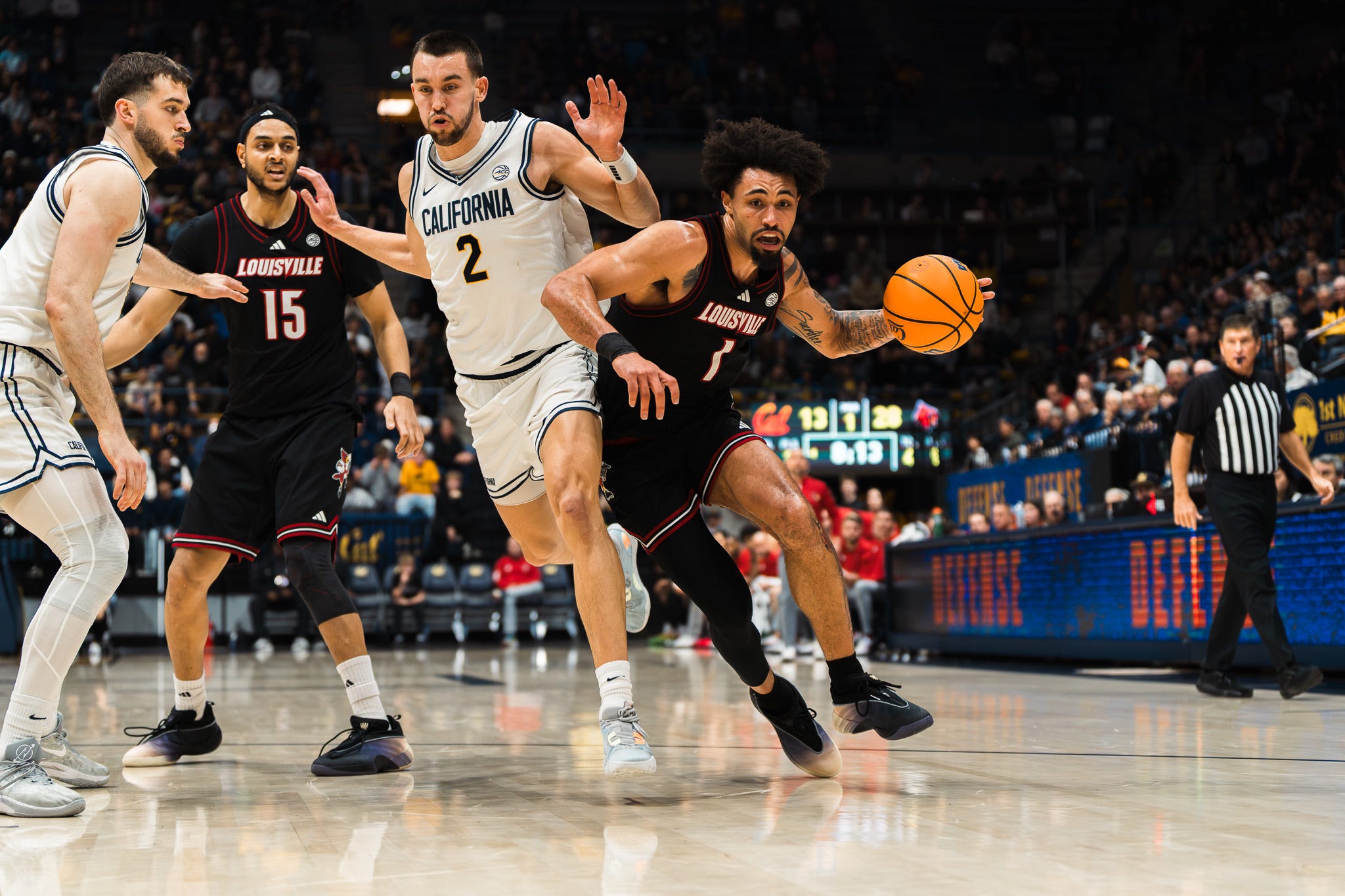 Cal was able to cut the lead down to 11 at the three minute mark, 36-25. The Cardinals scored seven straight points to extend the lead back to eighteen. At halftime, Louisville led 48-34.
