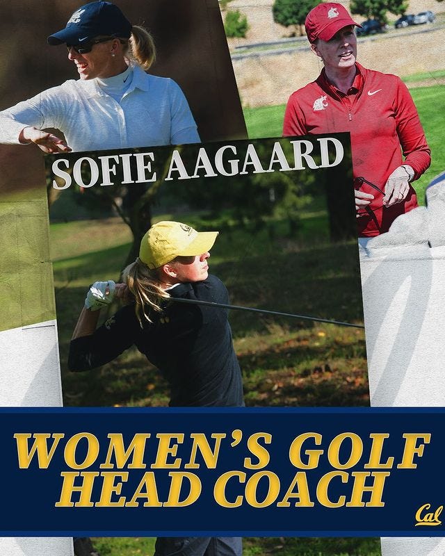 Cal Men’s Golf will be one of three programs to have a new head coach in 2024-25. Cal Volleyball hired Jen Malcom after going through the 2023 season with an interim head coach. Cal Women’s Golf hired Sofie Aagaard, Cal Women’s Golf alumna (2003-06), to replace the retiring Nancy McDaniel. Aagaard returned to Cal after head coaching stints at Cal Poly and Washington State.