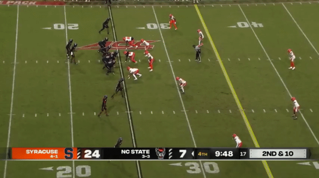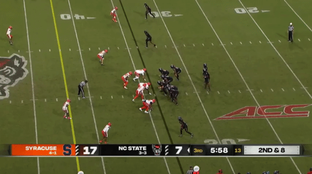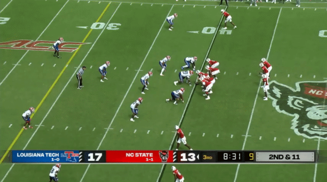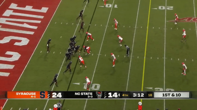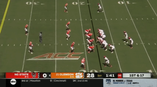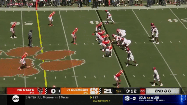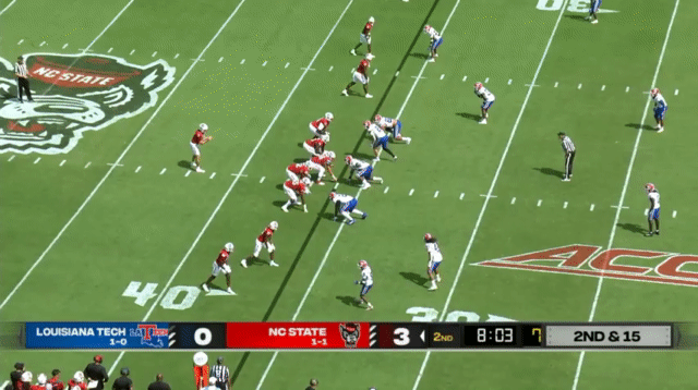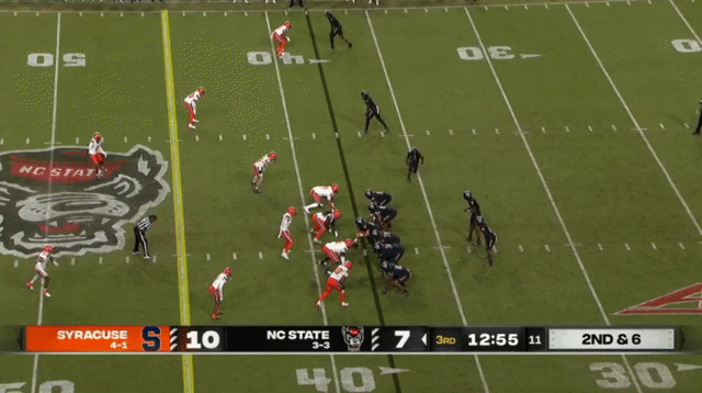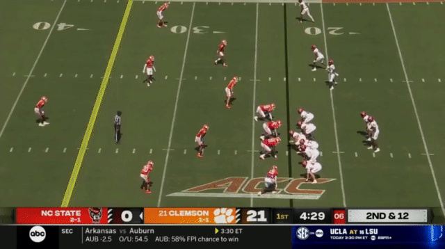 And the following was about the only real big run play for NC State so far this season (excluding another big run against Clemson’s 2nd/3rd string in garbage time, which, like the below play, was characterized by poor angles taken by the defense):