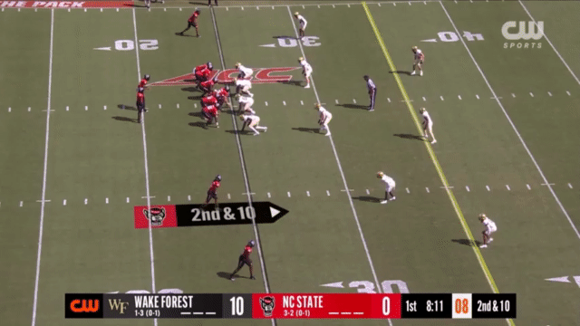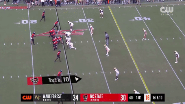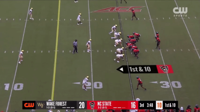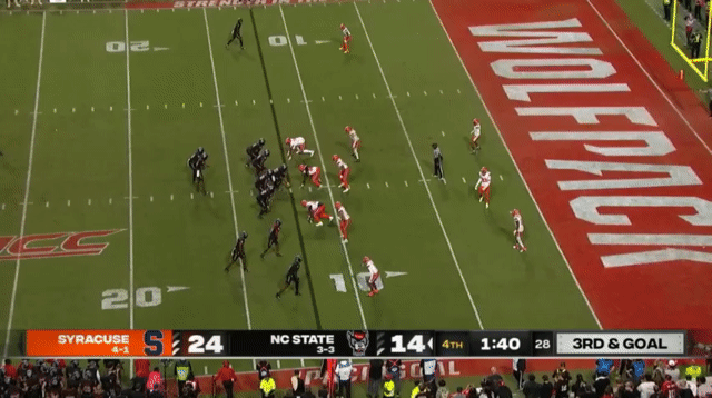 NC State has two very good receivers, which makes it difficult to decide who I should talk about first: TE Justin Joly or WR Kevin Concepcion. Concepcion was the ACC Rookie of the Year a Freshman All-American last year. However, after a huge first game this season, he’s been largely held in check these past few weeks—last year, he had 3 games in which he eclipsed 100+ receiving yards and 7 games in which he had 100+ combined rushing and receiving yards, but he hasn’t eclipsed 50 all-purpose yards since week 2 of this season. This may be due to teams now game-planning specifically around Concepcion.