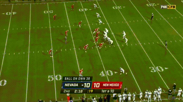 A big part of Nevada’s offense is designed around trying to coerce the opposing secondary into making a mistake (which is another reason why I think Cal will be a tougher test for Nevada than most Nevada fans probably realize). A corner might think he has safety help, but the safety gets pulled away by another route, leaving that corner on an island against someone blazing fast like Romeo Doubs.