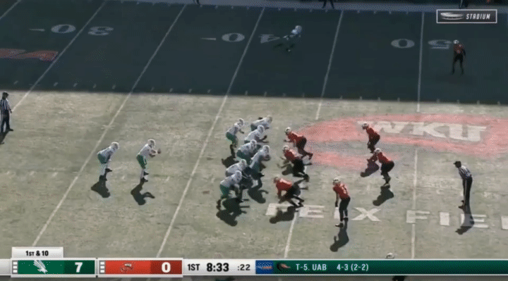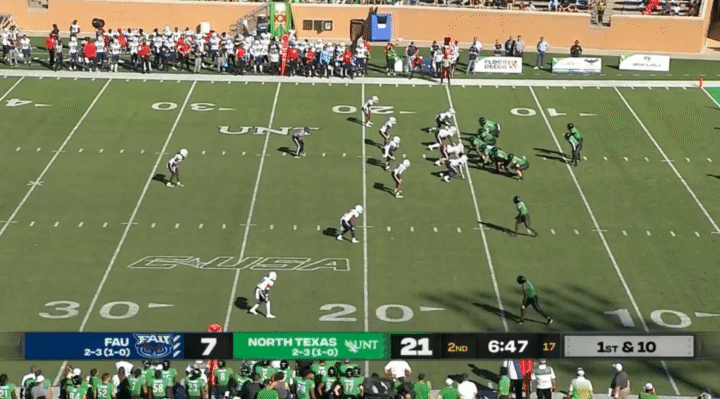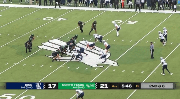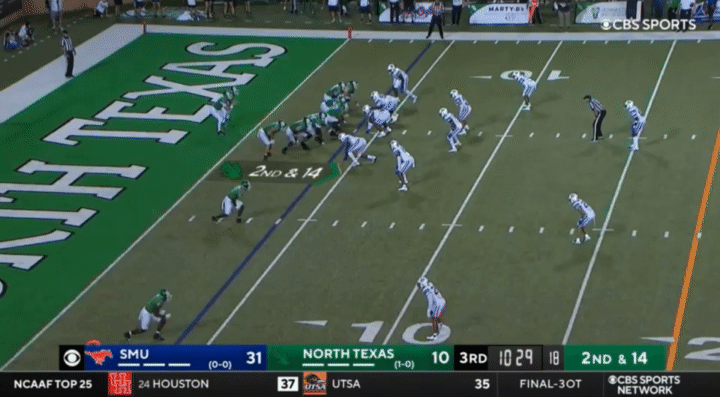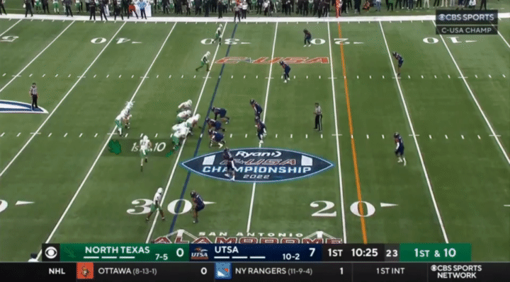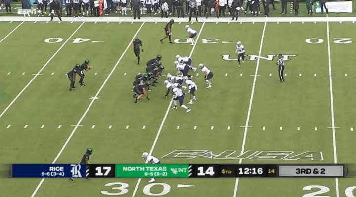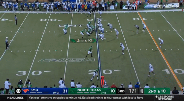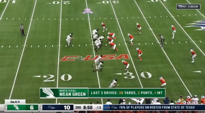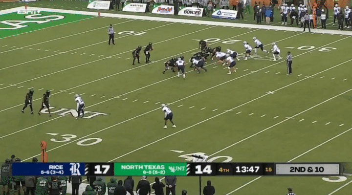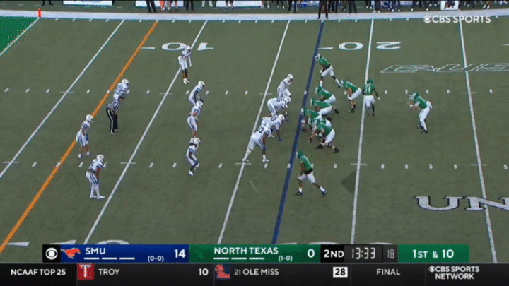 There was a time or two where it looks like Horton was gearing up to throw it on the jet sweep, so it’s a potential wrinkle to watch for if UNT runs a trick play.