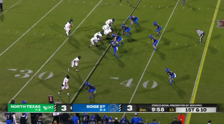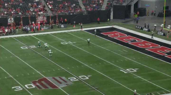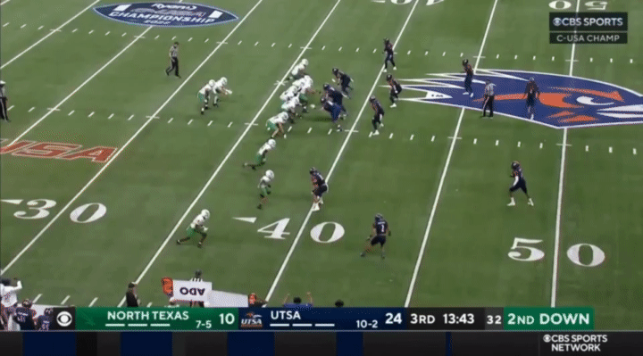 North Texas returns last year’s receiving yards leader in Roderic Burns. Burns didn’t show up in many highlights, but he was frequently targeted on shorter throws over the middle field or down the seam, like a possession receiver— hence why Burns is the designated Y-receiver (on the inside slot).