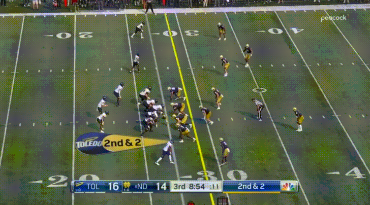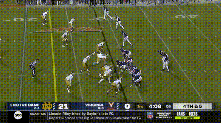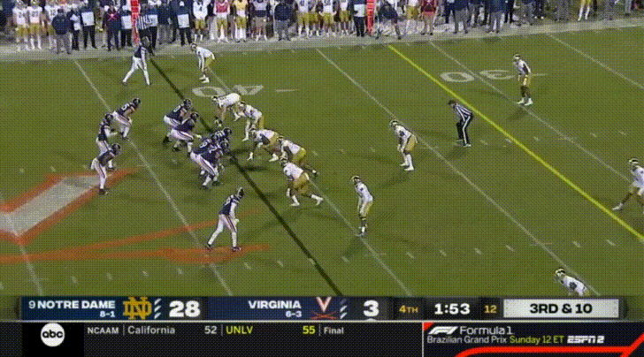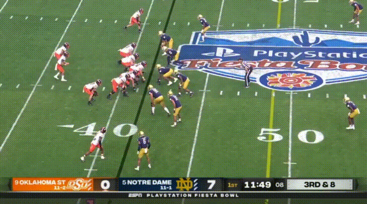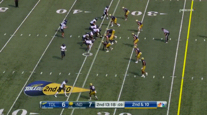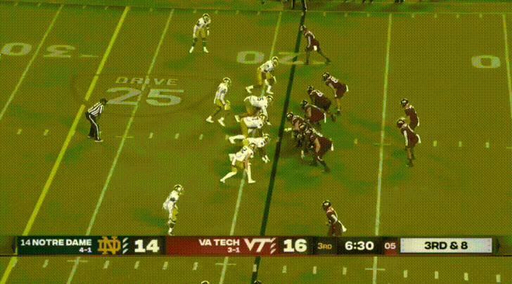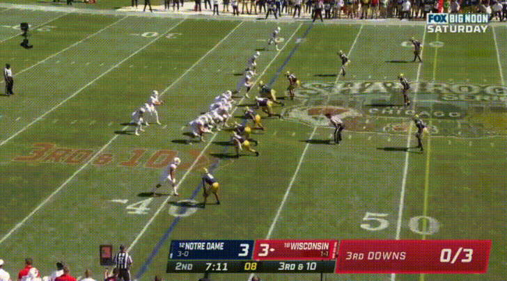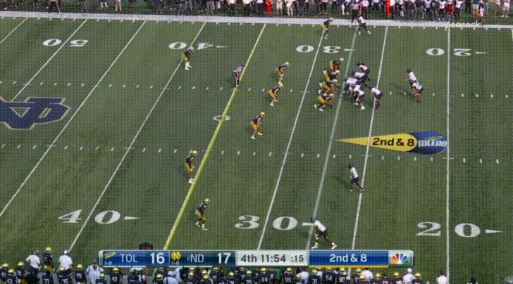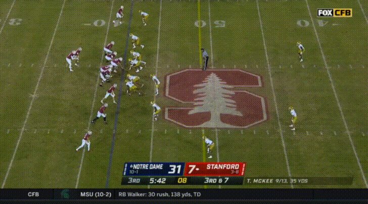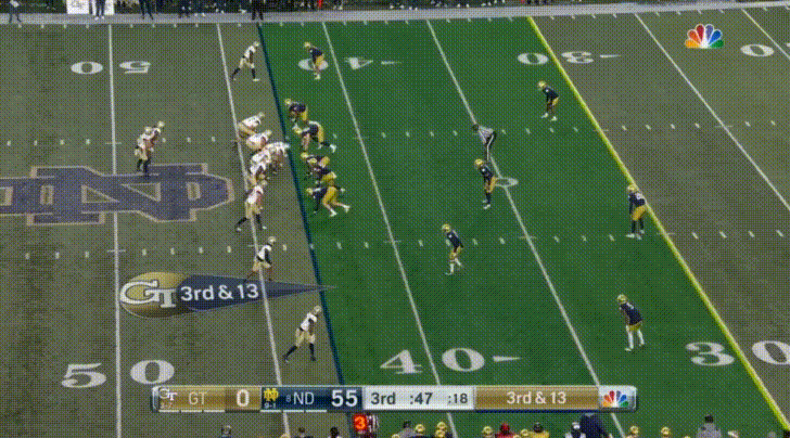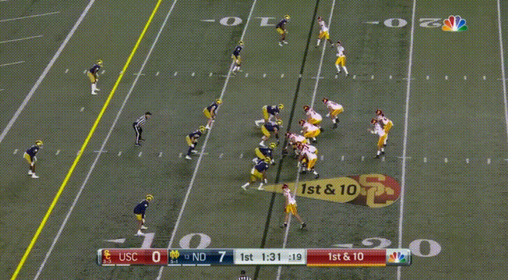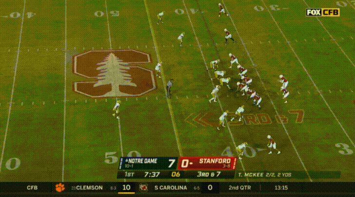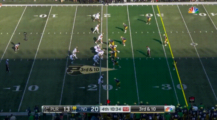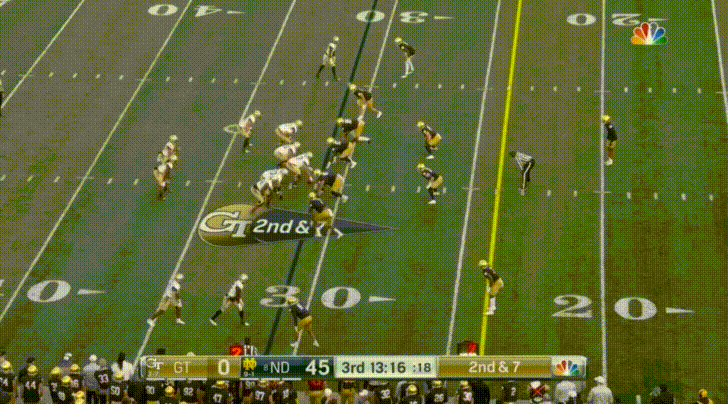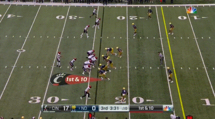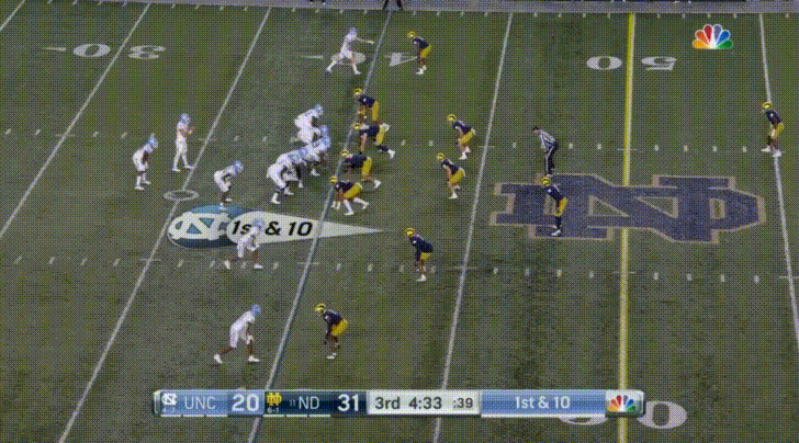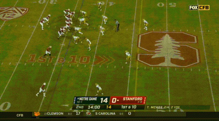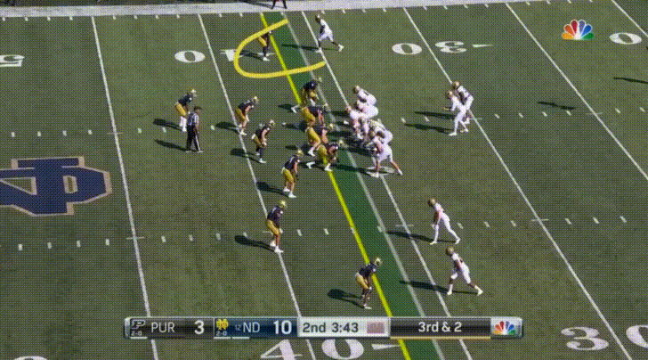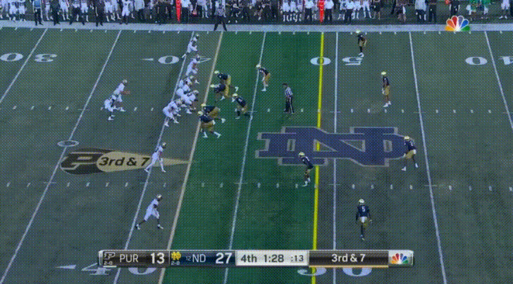 When I mentioned earlier that quarterback pressures resulted in turnovers for Notre Dame, I was referring to plays like this: