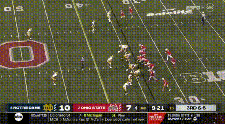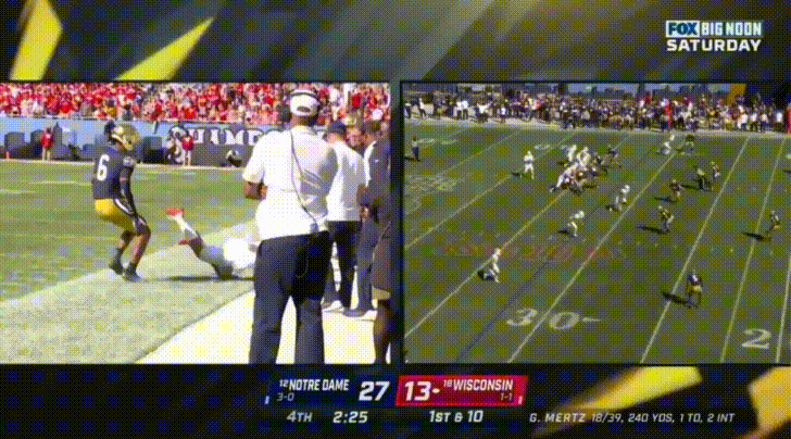 Although the Notre Dame offense has struggled so far this season, this is still a very good defense. After promoting the former defensive coordinator Marcus Freeman to head coach, Notre Dame had an absolutely fantastic defensive gameplan for the high-powered Ohio State offense. Notre Dame knew exactly what Ohio State wanted to do on offense and took that away from them, forcing Ohio State QB CJ Stroud to beat them via difficult throws on his 3rd or 4th reads. At the very least, Freeman demonstrated that at least the defensive side of the ball could hang with a likely playoff-bound team (well, at least with a whole offseason of preparation). I’m hoping Notre Dame took a look at Cal’s offense and thought, “Yeah, we don’t need to study for this one.”