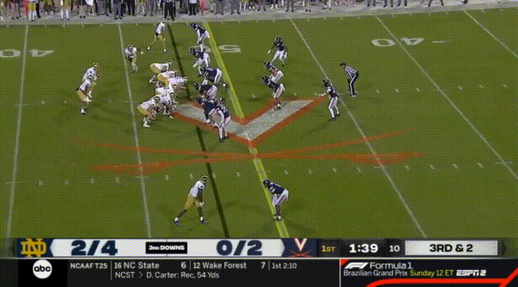 Let’s start with Chris Tyree. Tyree is the smaller, shiftier back of the bunch. Last year, they’d line up both Kyren Williams and Chris Tyree in the backfield, taking advantage of Tyree’s versatility as a pass catcher (ND will also line up Tyree in the slot and occasionally out wide).