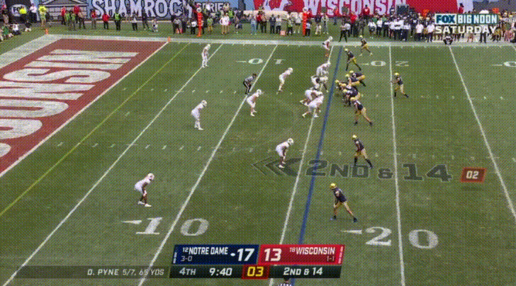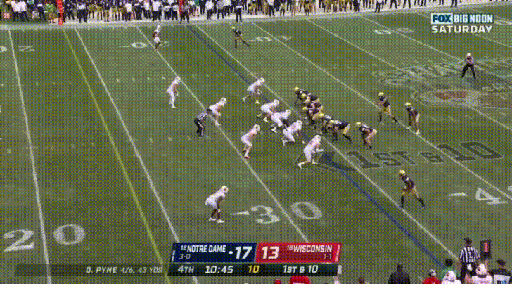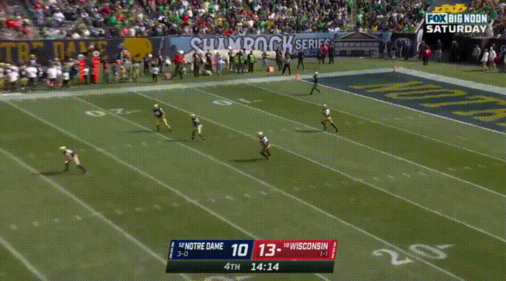 With Drew Pyne at the helm, Notre Dame is probably going to lean on its receivers to make more plays, like this one by Joe Wilkins Jr.: