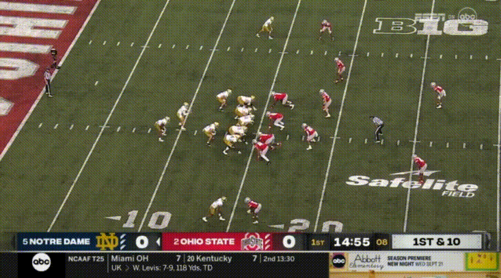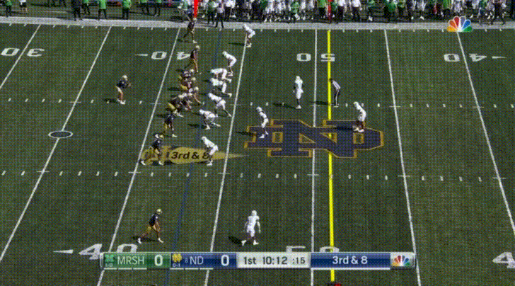 As I mentioned earlier, Notre Dame lost this season’s starting quarterback, Tyler Buchner, to a season-ending shoulder injury. Not to kick the man while he’s down, but I wasn’t super high on him to begin with, which is why I had a bit more optimism leading into this game than most ND fans would probably expect (although that’s not as surprising now, because they just, you know, lost to Marshall). Buchner looked extremely comfortable running the ball, but quite uncomfortable sitting in the pocket and making his reads, which is not great for the development of a young quarterback. In his place is the junior Drew Pyne. Pyne is also a dual-threat quarterback, and although he won’t run the ball as well as Buchner, that threat of the run is still there. Conversely, he’s probably also a bit better at ball placement on his throws.
