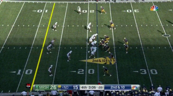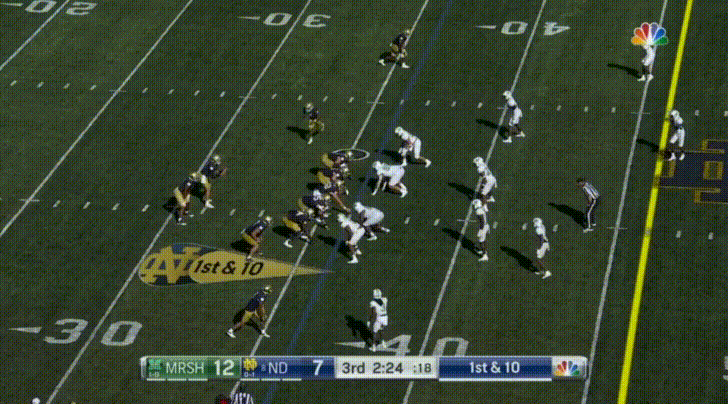 Mayer is a mismatch for most defenders, and consequently by far the most frequent target of the ND QBs. It’s not unusual to see Mayer draw extra defender(s), which makes him effective in setting up plays to other receivers: a safety gravitating towards Mayer can leave a different receiver in a one-on-one matchup for a big play.