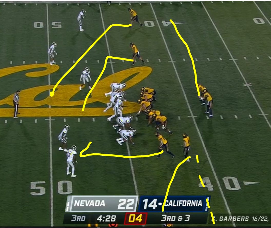 Look. If a schmuck like me with a laptop and way too much free time can figure out this tendency, then any DC/GA worth their salt can see that currently, this is the go-to play on 3rd and short for Cal. Since this is a very common concept in college and the NFL the counters for it are available where both stick and flat routes being covered and even interceptable if the defense can key into the tendency.