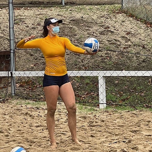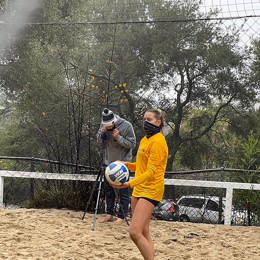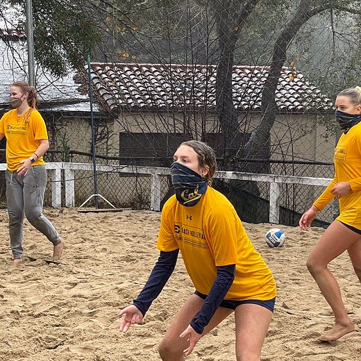 Then, we have issue like how indoor and beach volleyball seasons might overlap. Cal senior Mima Mirkovic is the superstar for both teams. Will she have to make a decision on which team to join (she was pictured in the beach volleyball training)? Can she hang out with both pods of players? It’s hard to see how Cal Volleyball could be competitive if their all-rotation outside hitter opt to sit out the season.