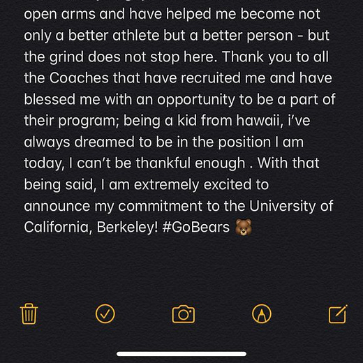 Hisatake posted an IG TV video on his Instagram account to highlight great Cal moments and his decisions for choosing the school; he later Tweeted to reinforce his commitment and to thank important figures in his life.