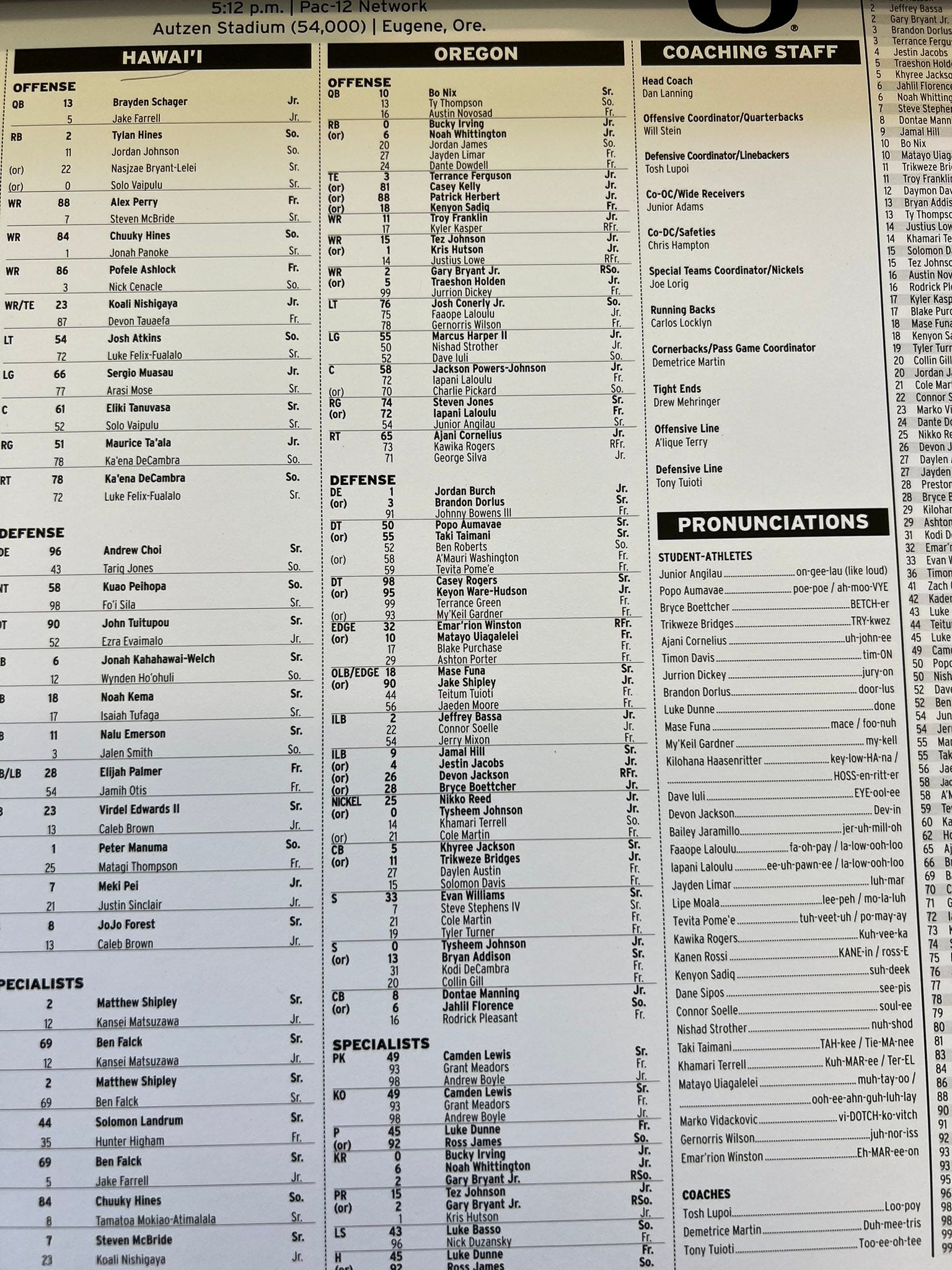 The Ducks defense is led by DC Tosh Lupoi (gross, I should just end here and be done with it)