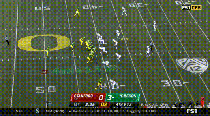 The most obvious display of their dominance, though, is their performance in short yardage situations. If it’s 3rd and short or 4th and short, you know Oregon is going to run the ball, and you’re not going to be able to stop them. The offensive line consistently gets a huge push at the line to convert in short yardage situations: