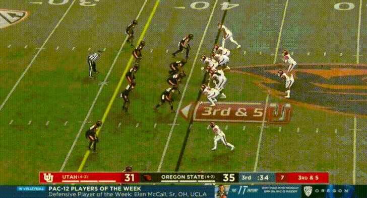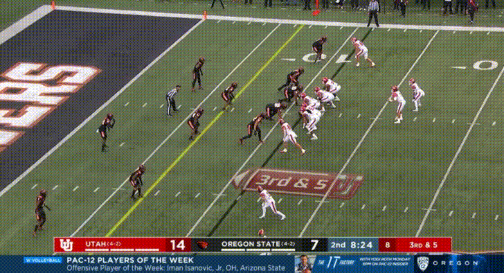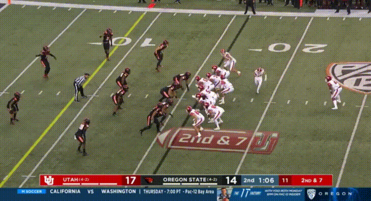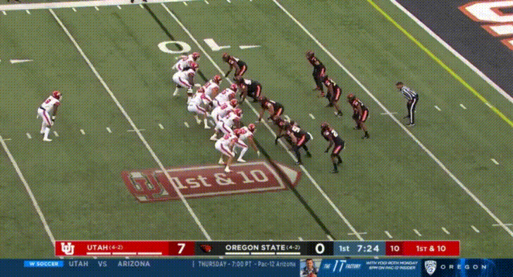 In the next play, Andrzej Hughes-Murray quickly sheds the Utah tight end for a tackle for loss. Look at the speed at which OSU flies to the ball carrier: