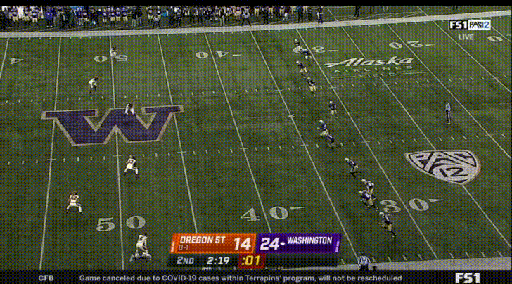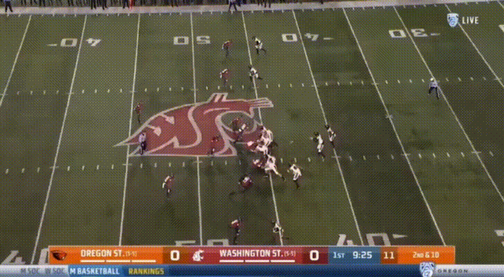 After the departure of Isaiah Hodgins to the NFL, OSU looks a lot thinner at wide receiver. I don’t know the diplomatic way to say this, but they can probably best be described as a “scrappy bunch.” The #1 receiver, Trevon Bradford, is the tallest of the bunch (at least of receivers that have seen the field) listed at 6’0”. Kolby Taylor is 5’11”, Tyjon Lindsey is 5’9”, and Champ Flemings… 5’5”. Consequently, they all play like receivers with a chip on their shoulder, after being snubbed by bigger schools for their lack of size. OSU receiver corps is probably not going to win a lot of jump balls, but they will fight their damnedest for yards after the catch: