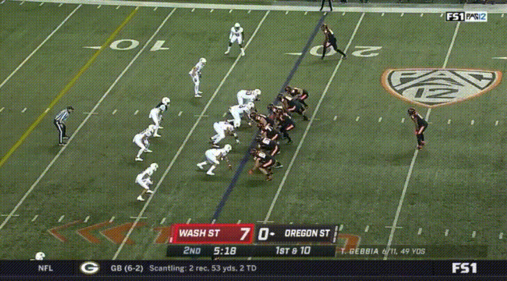 OSU has been taking advantage of a short passing game, and so I don’t really have any highlights of Gebbia, since there aren’t many examples of him taking shots down the field, nor are there many clips of him making throws in tight windows. OSU has been playing it safe through the air, and mainly gaining yards on the ground.