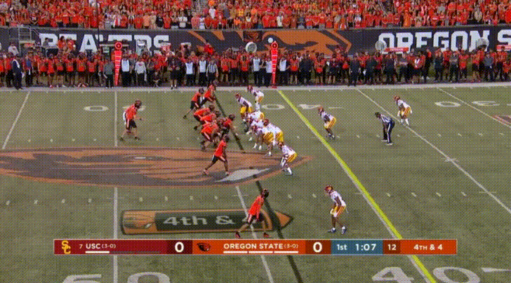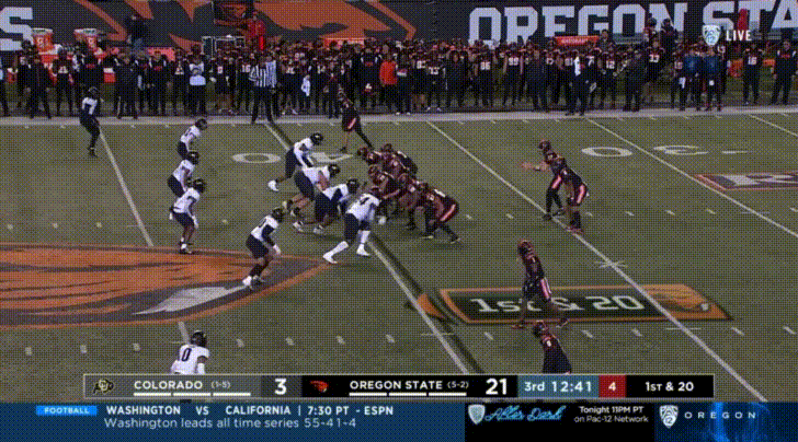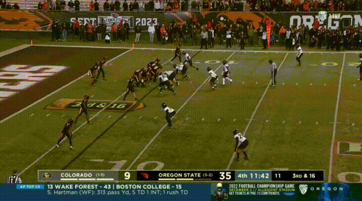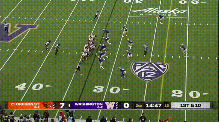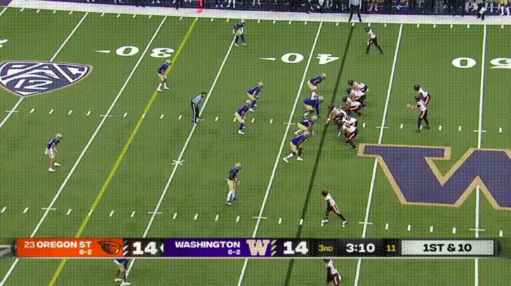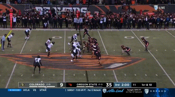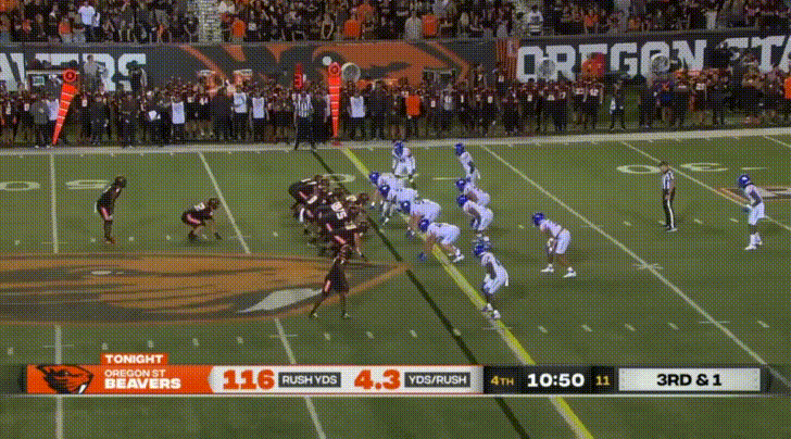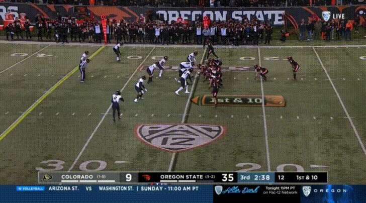 When Jonathan Smith first took over as coach for Oregon State, they faced a large talent gap in most of their games, and thus they loved trick play. Now that Oregon State is doing fairly well (with a 6-3 record, only with losses to #8 USC, #13 Utah, and #24 Washington), they haven’t relied on the trick play much this year. But it’s always an option: