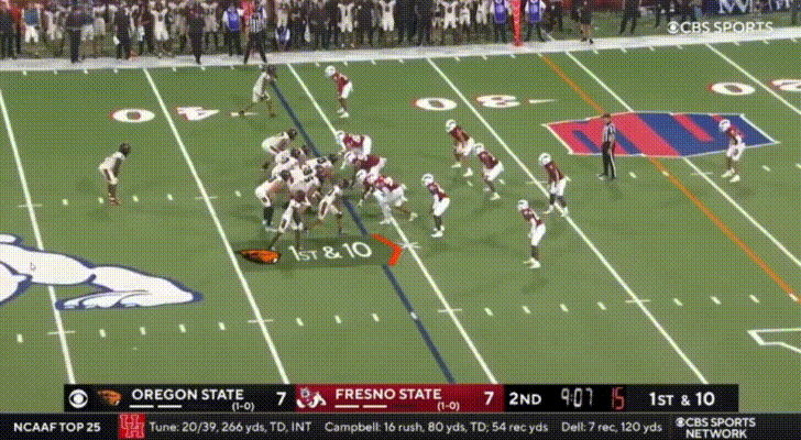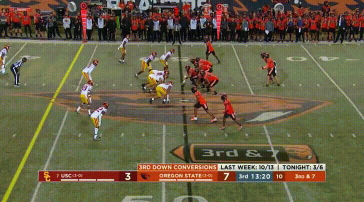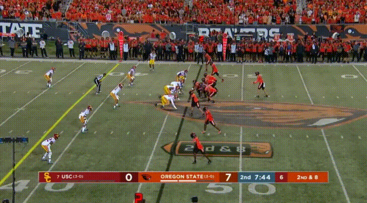 OSU does a good job of steadily chewing up yards on the ground, and getting a lot of 3rd-and-manageable drives (and they love going for it on 4th down anyway). Fundamentally, Oregon State is just a team that blocks very well, and they’ve built they’re offense around that fact.