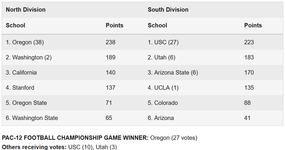 The two divisional favorites are perennial winners Oregon and USC with the former winning the championship games. The Bears were picked to finish behind two Northern foes whom we’ve beaten the last time we faced (2020 vs. Oregon and 2019 vs. Washington) and ahead of our archrivals, the villainous Stanfurd. Down in the South, embattled California alumnus Herm Edwards has Arizona State ranked third with six first-place votes; the South in general is more contentious than the North, with four teams earning first-place votes.
